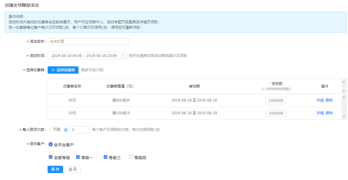 不同等级客户所赠券不同