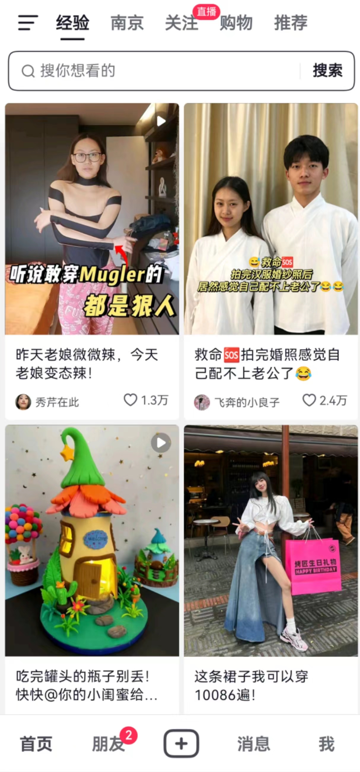 抖音近日已经在首页顶部上线了“经验”频道,并将内容分类成美食、旅行、生活家居、穿搭等多个品类,以图文和短视频内容为主。无论是内容,还是页面形式,都与小红书非常相似。而此番将“经验”入口放在首页上,相当于直接在抖音主站装下了一个生活方式社区,这也意味着在流量分发上,图文被提升到一个重要的位置。