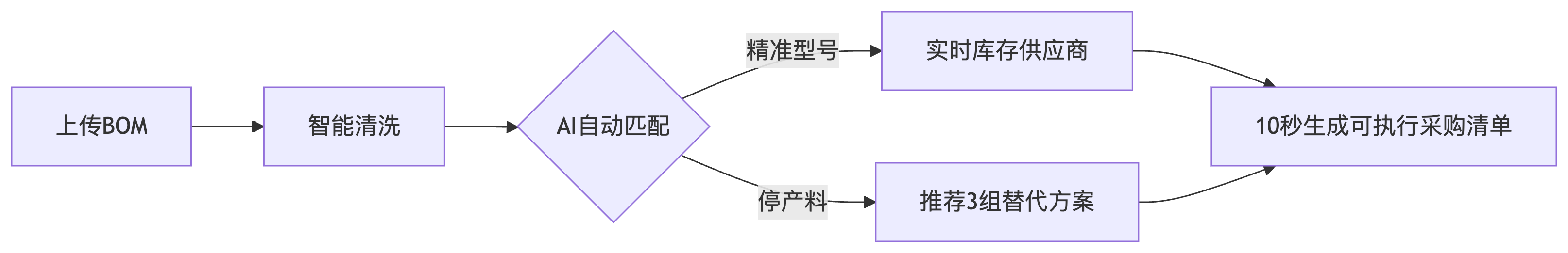 ● 接入原厂授权数据+全球分销商实时库存,覆盖电阻电容、IC芯片等2500万SKU